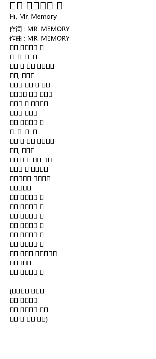 | 作词 : MR. MEMORY | |