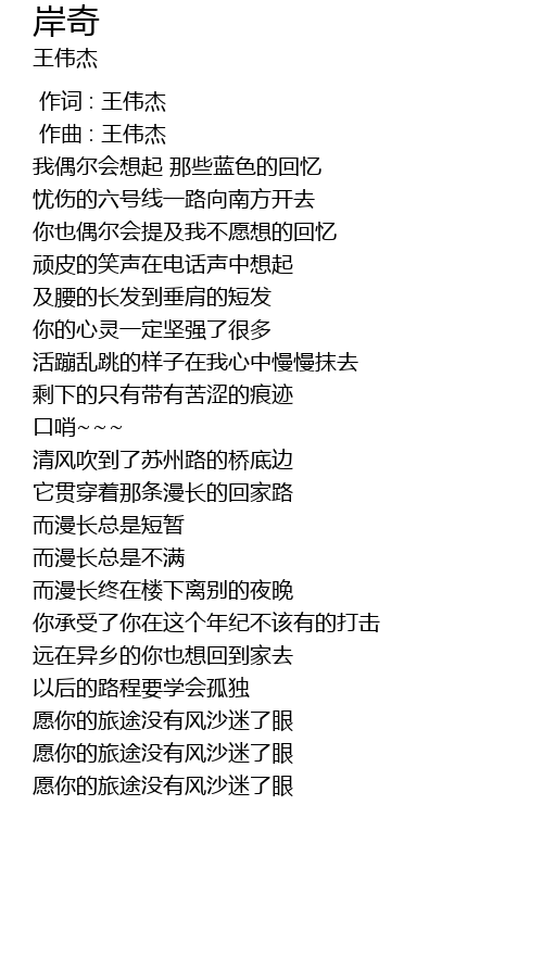 | [00:00.000] | 作词 : 王伟杰 |