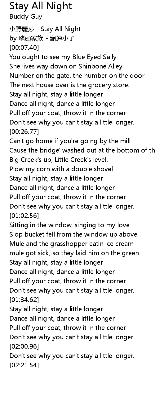 | [02:17.76] | Don' t see why you can' t stay a little longer. |