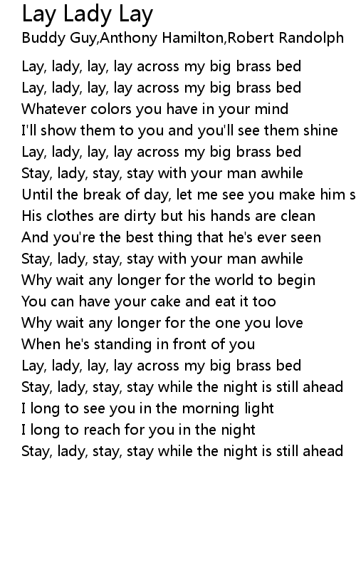 Lay, lady, lay, lay across my big brass bed |