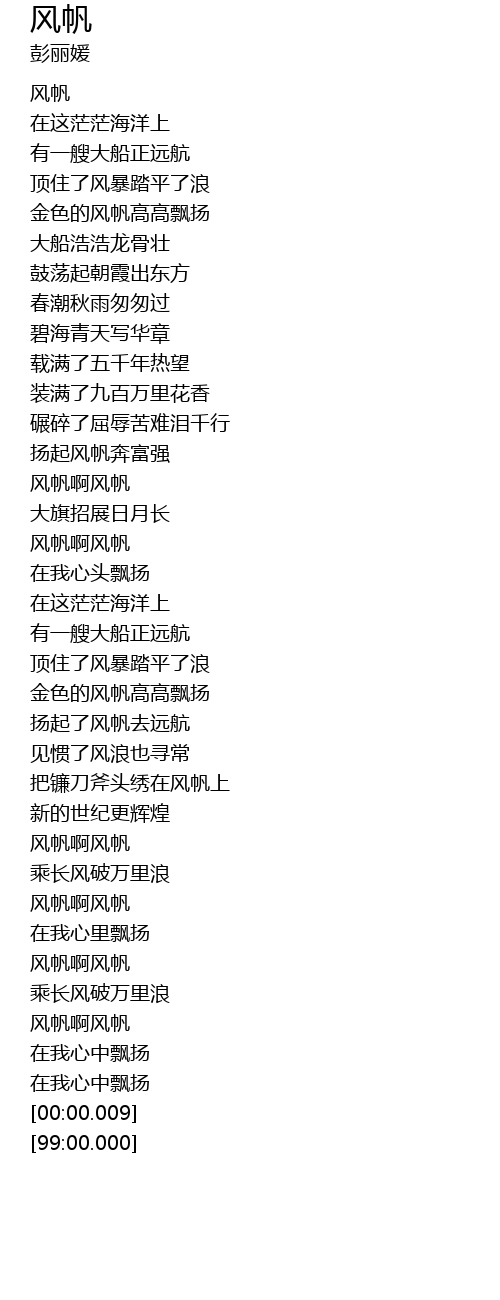 | [00:56.14] | 金色的风帆高高飘扬 |