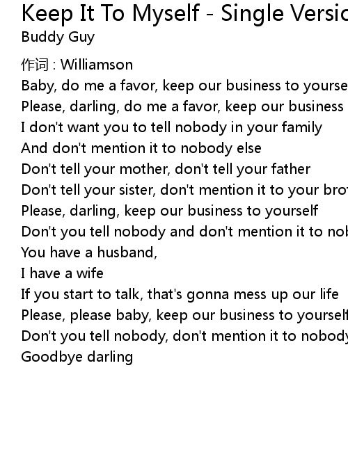 | Don' t you tell nobody, don' t mention it to nobody else | |