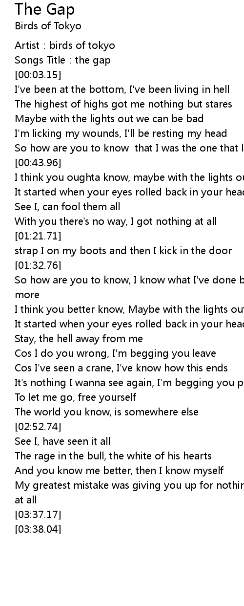 | [00:01.80] | Songs Title: the gap |