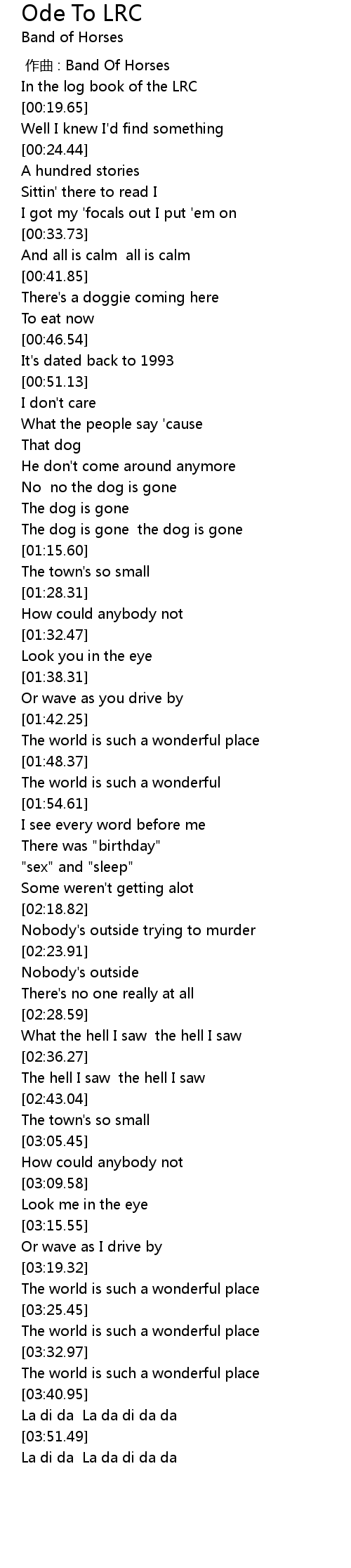 | [00:00.00] | zuò qǔ : Band Of Horses |