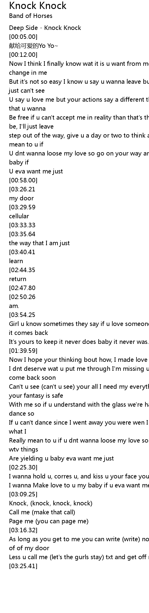 | [03:11.33] | Knock, (knock, knock, knock) |