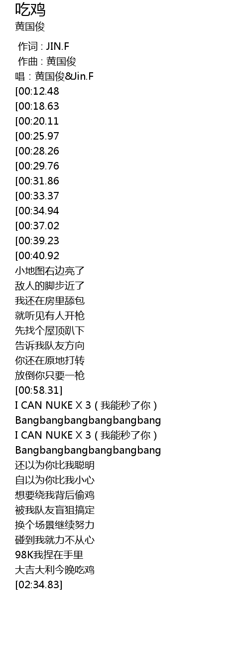 | [01:40.27] | 大吉大利今晚吃鸡 |