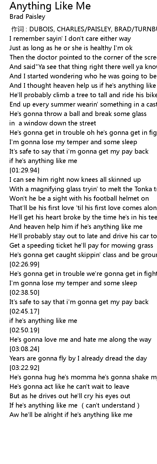 | [00:44.97] | He'll probably climb a tree to tall and ride his bike to fast |