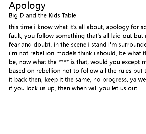 this time i know what it's all about, apology for something that's no one's fault, you follow something that's all laid out but never break free cause of fear and doubt, in the scene i stand i'm surrounded by a book, a list of things i'm not rebellion models think i should, be what they are, what they want me to be, now what the **** is that, would you except me no, can't you see your musics based on rebellion not to follow all the rules but to create like those who did it back then, keep it the same, no progress, ya well we're fine the way it is, if you lock us up, then when will you let us out. |