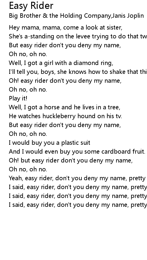 I said, easy rider, don't you deny my name, pretty baby ... |