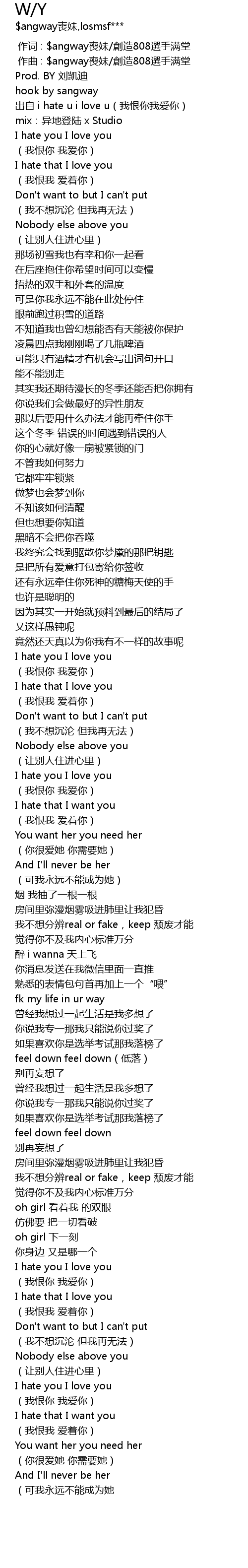 | [00:00.000] | 作词 : $angway喪妹/創造808選手满堂 |