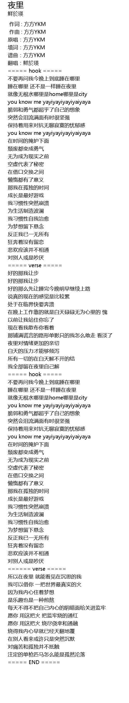 | [00:01.000] | 作曲 : 方方YKM |
