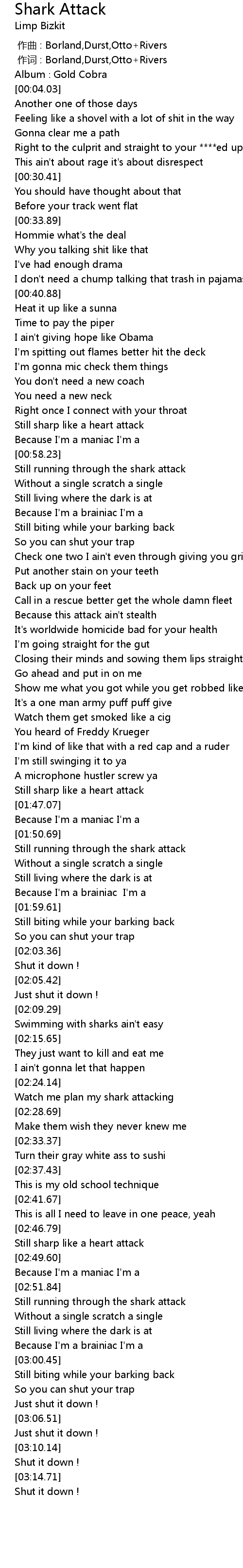 | [00:46.18] | I' m spitting out flames better hit the deck |