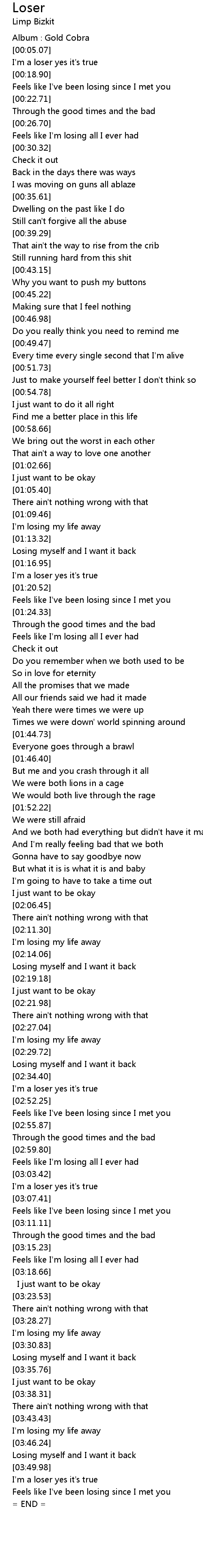 | [03:00.48] | Feels like I' m losing all I ever had |