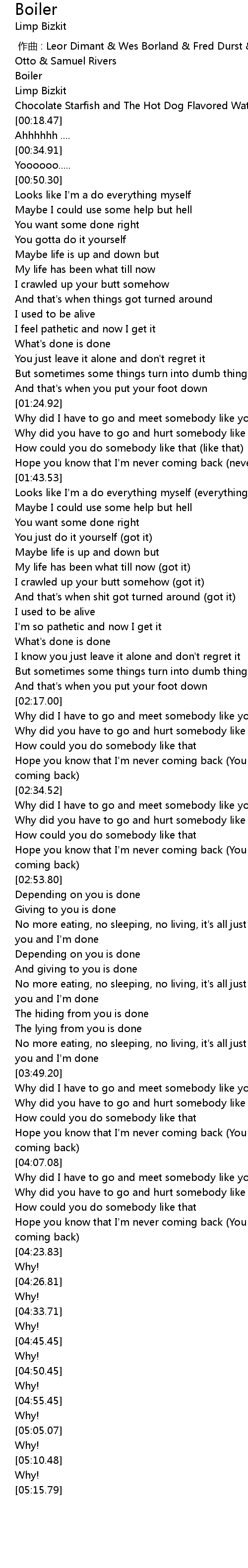 | [00:00.00] | zuo qu : Leor Dimant Wes Borland Fred Durst Sam Rivers John Otto Samuel Rivers |