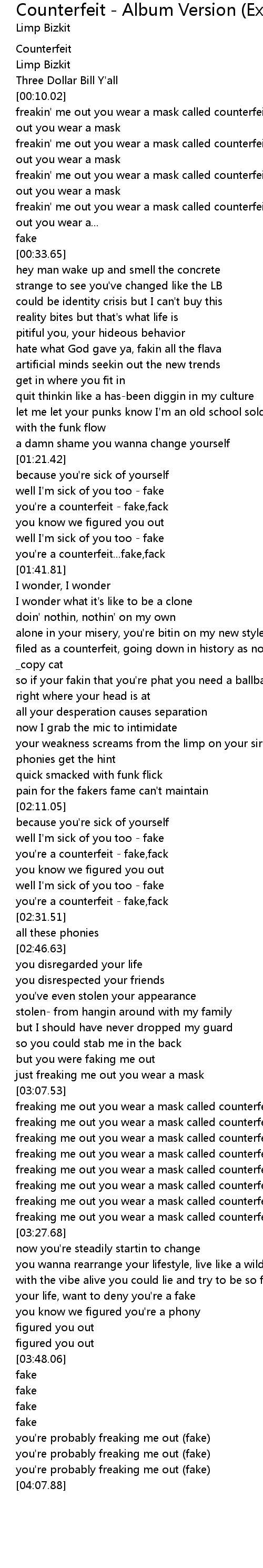 freakin' me out you wear a mask called counterfeit, you're freakin' me out you wear a... |