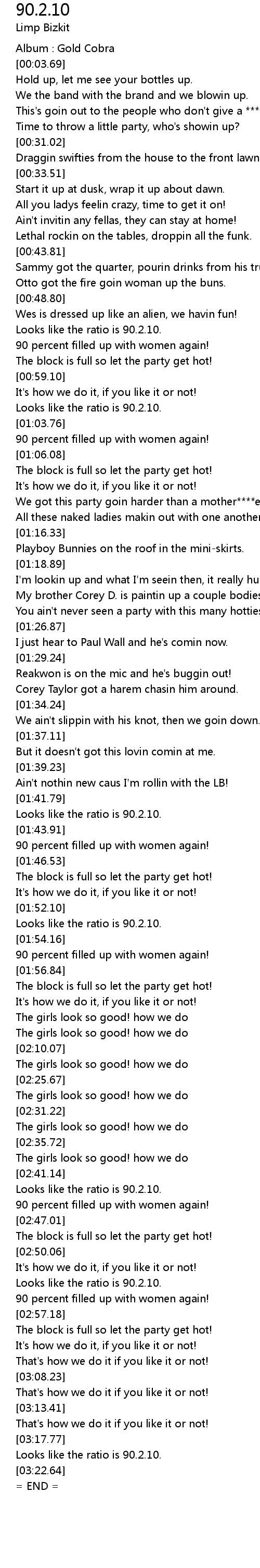 | [03:00.99] | It's how we do it, if you like it or not! |
