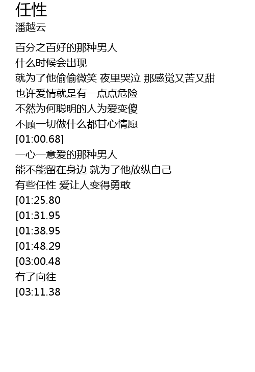 | [01:20.32] | yǒu xiē rèn xìng ài ràng rén biàn de yǒng gǎn |