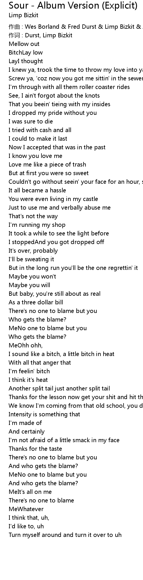 | 作曲 : Wes Borland & Fred Durst & Limp Bizkit & John Otto & Samuel Rivers | |
