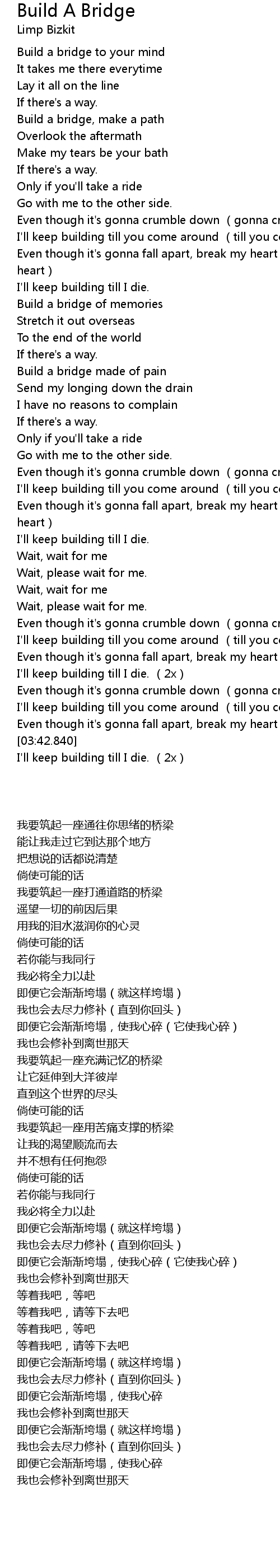 | [00:40.200] | 我要筑起一座打通道路的桥梁 |