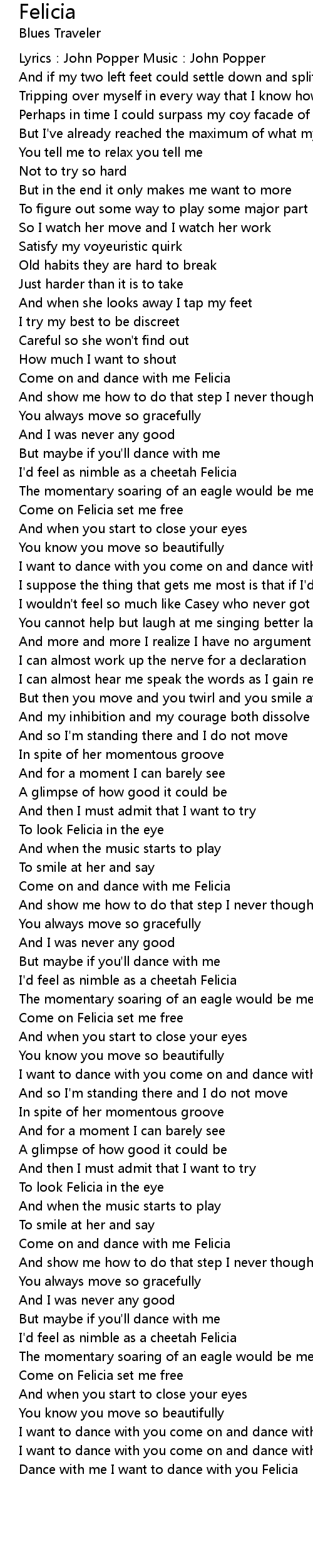 | I want to dance with you come on and dance with me Felicia | |