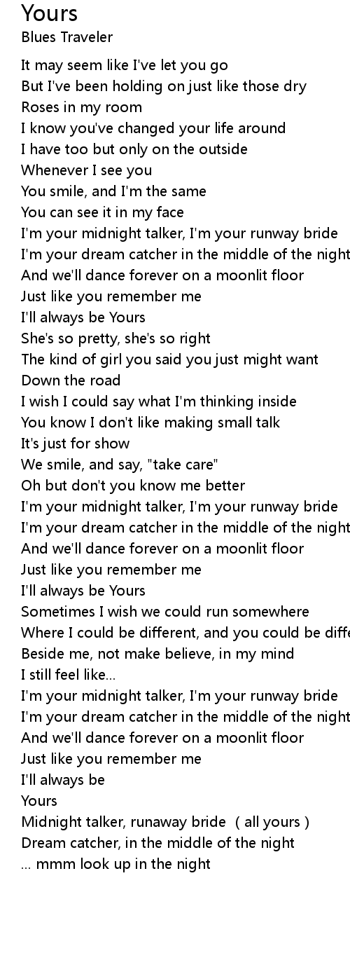 | [03:17.03] | Midnight talker, runaway bride (all yours) |