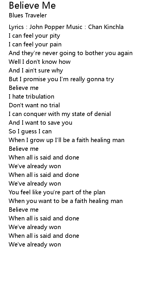| Believe me | |