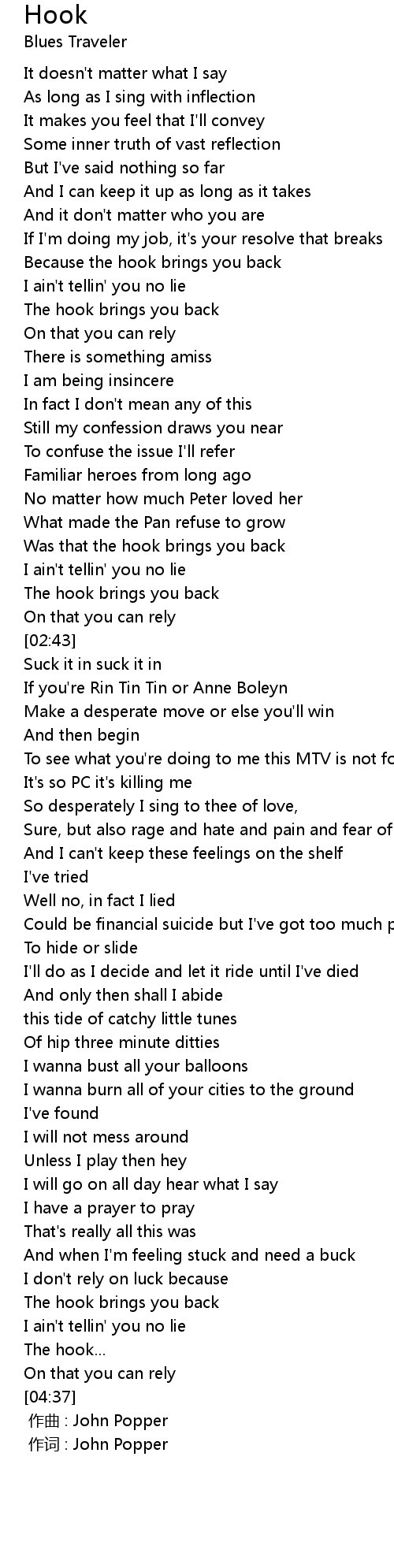 | [00:00.00] | zuo qu : John Popper |