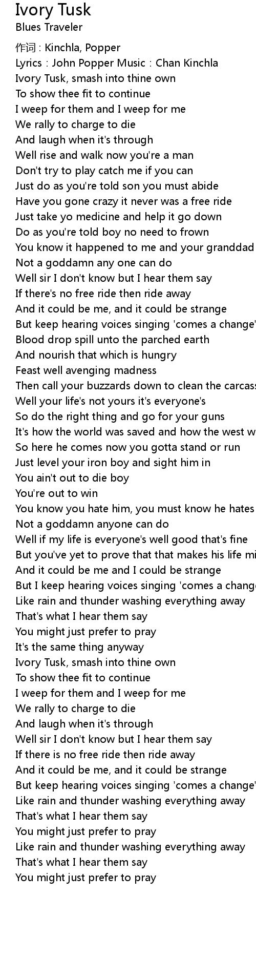 | 歌曲 | Ivory Tusk |
