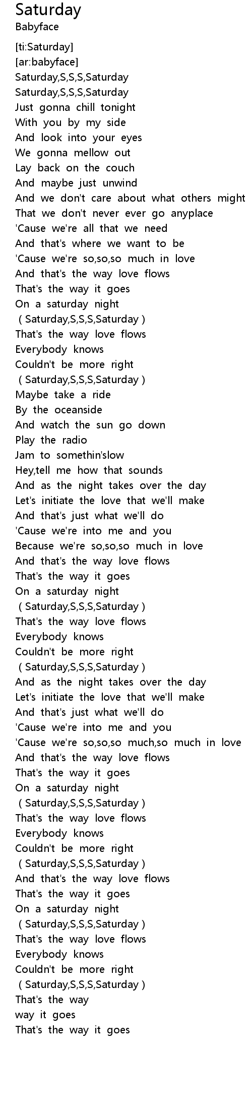 | [02:19.22] | Saturday, S, S, S, Saturday |