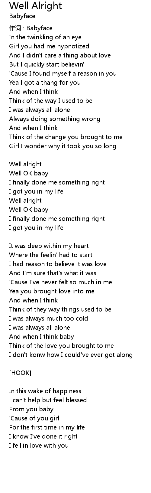 | 歌曲 | Well Alright |