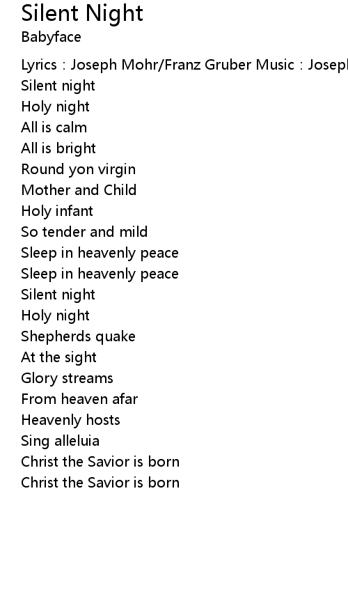 | Lyrics: Joseph Mohr Franz Gruber Music: Joseph Mohr Franz Gruber | |