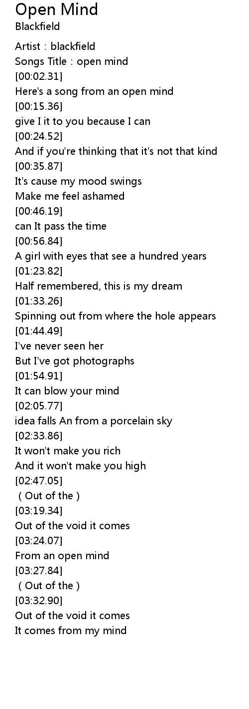 | [00:01.00] | Songs Title: open mind |
