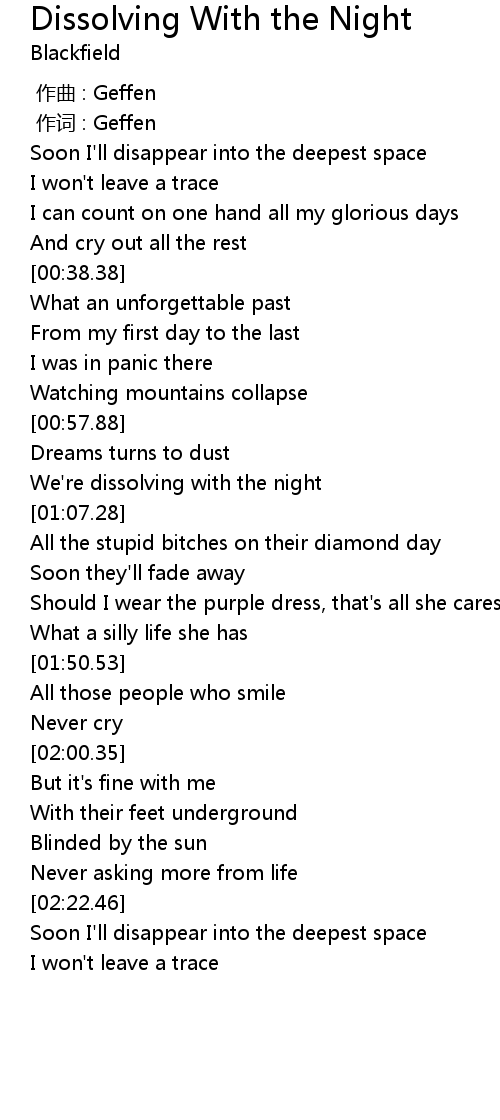 | [03:40.38] | Soon I'll disappear into the deepest space |