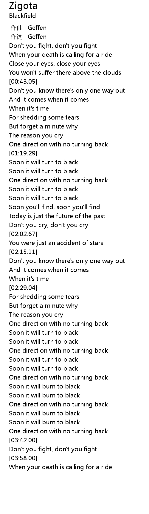 | [03:30.71] | Soon it will burn to black |