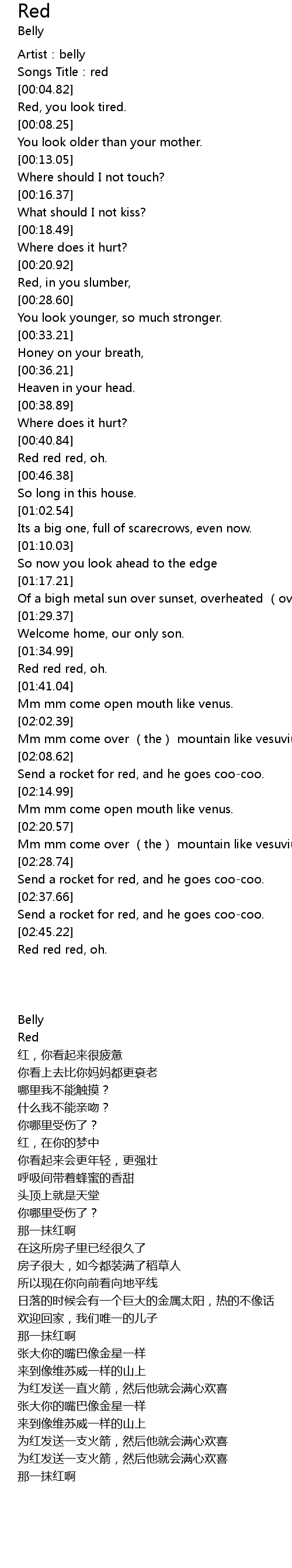 | [00:01.57] | Artist: belly |