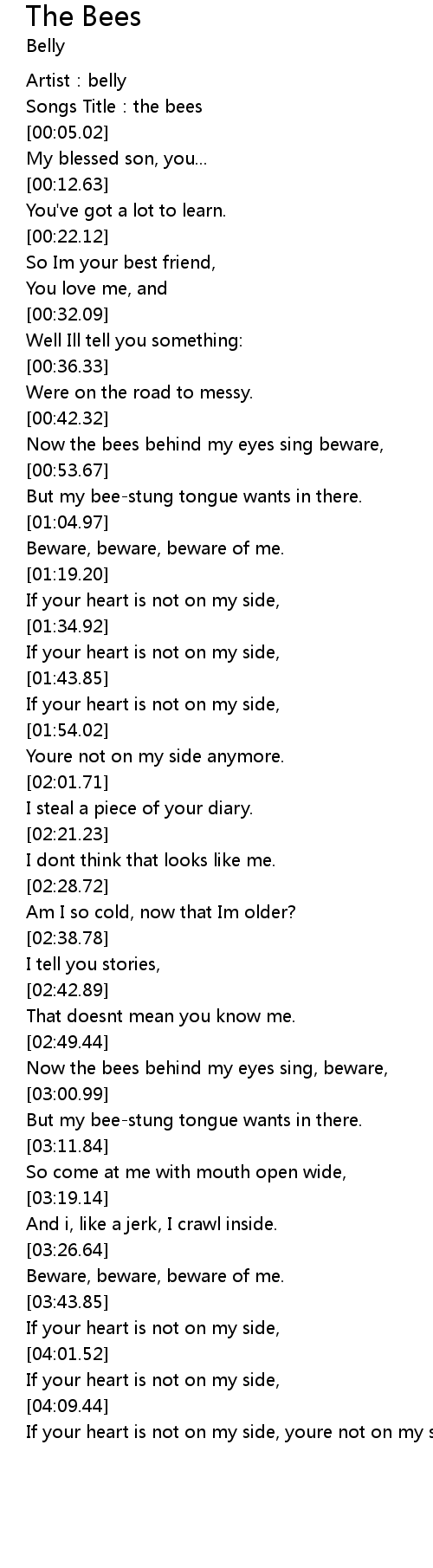 | [00:02.90] | Songs Title: the bees |