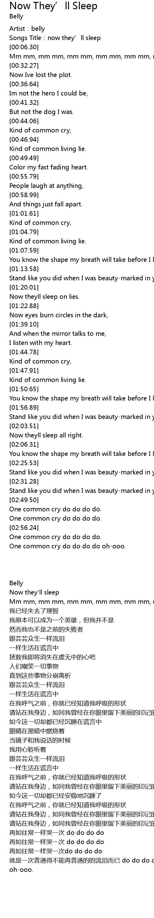 | [00:01.19] | Artist: belly |
