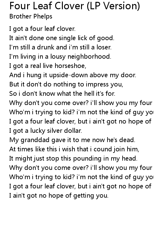 I got a four leaf clover, but i ain't got no hope of |