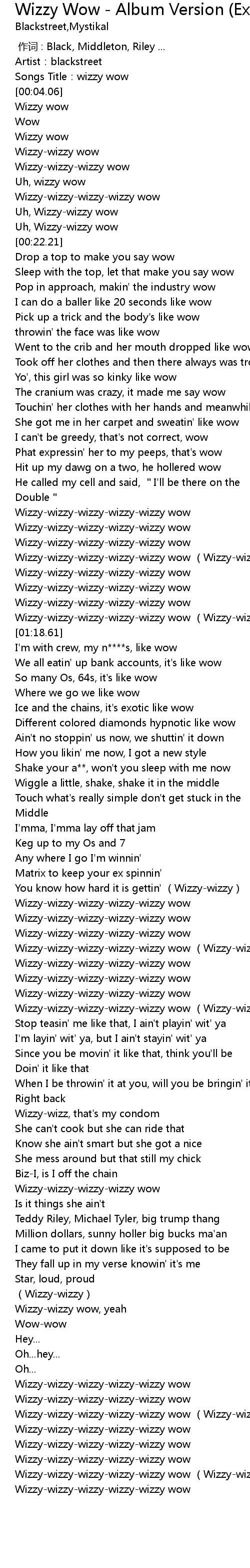 | [02:17.47] | Wizzy-wizzy-wizzy-wizzy-wizzy wow (Wizzy-wizzy) |