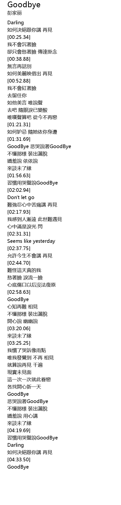 | [01:32.75] | GoodBye bēi kū shuō zhe GoodBye |