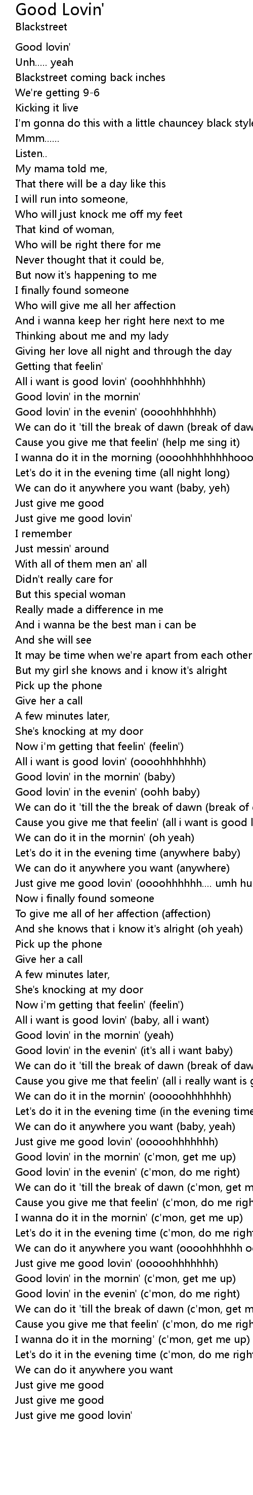 Just give me good lovin' (oooohhhhhh.... umh humh)