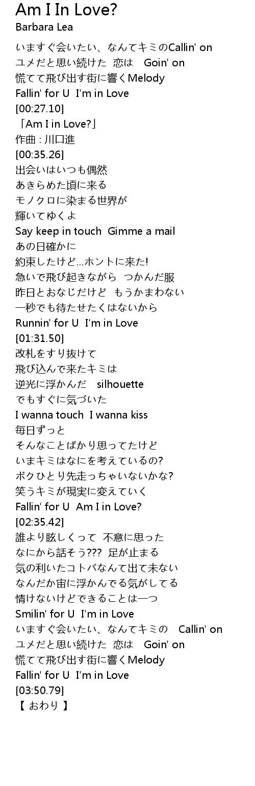 | [02:30.01] | Fallin' for U Am I in Love? |
