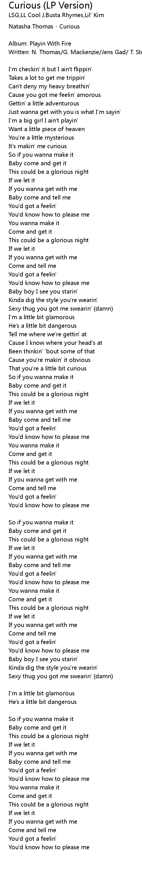 Written: N. Thomas/G. Mackenzie/Jens Gad/ T. Stenezl/Rap: Triple C |