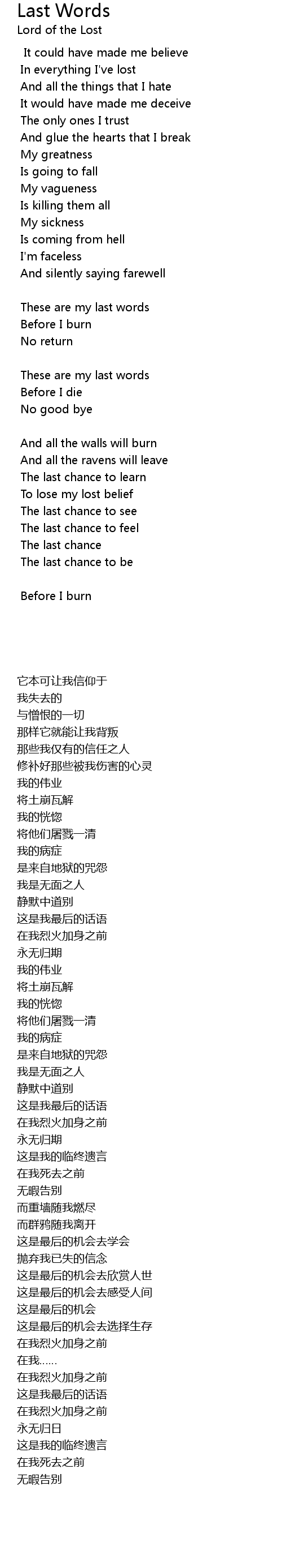 | 歌曲 | Last Words |