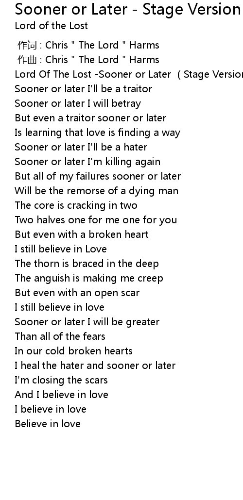| [00:00.777] | Lord Of The Lost Sooner or Later Stage Version |