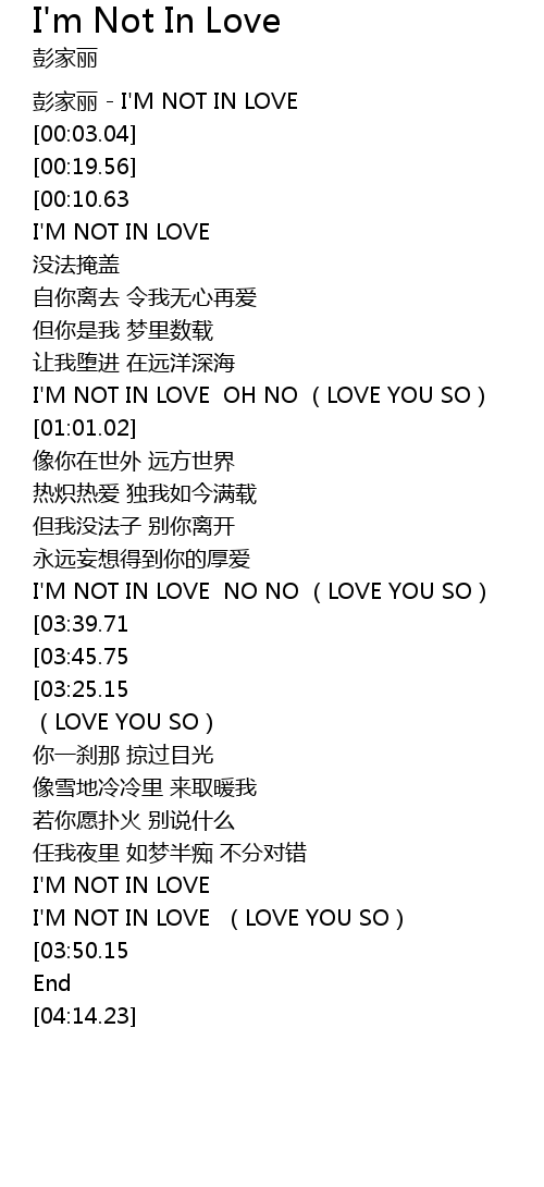 | [00:00.00] | peng jia li I' M NOT IN LOVE |