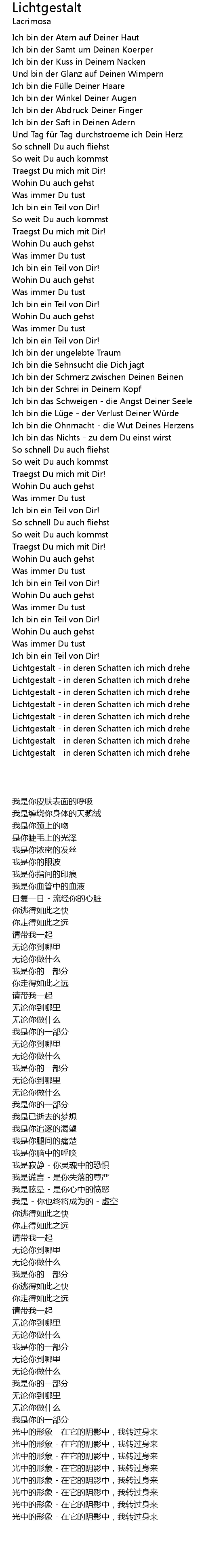 | 歌曲 | Lichtgestalt |