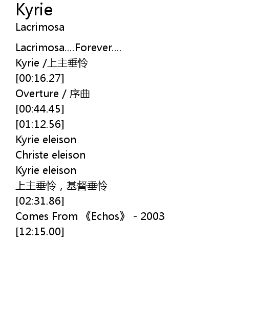 | [01:59.74] | Kyrie eleison |