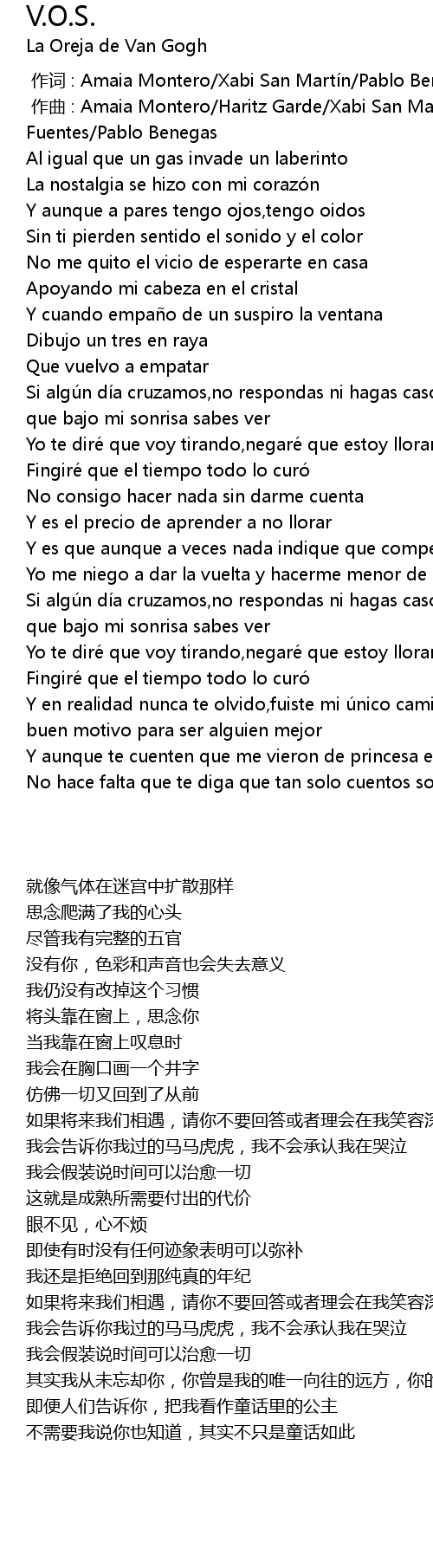 | [00:00.000] | 作词 : Amaia Montero/Xabi San Martín/Pablo Benegas |