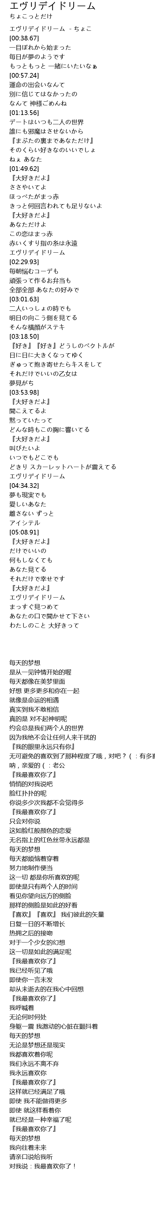 | [00:20.22] | エヴリデイドリーム - ちょこ |